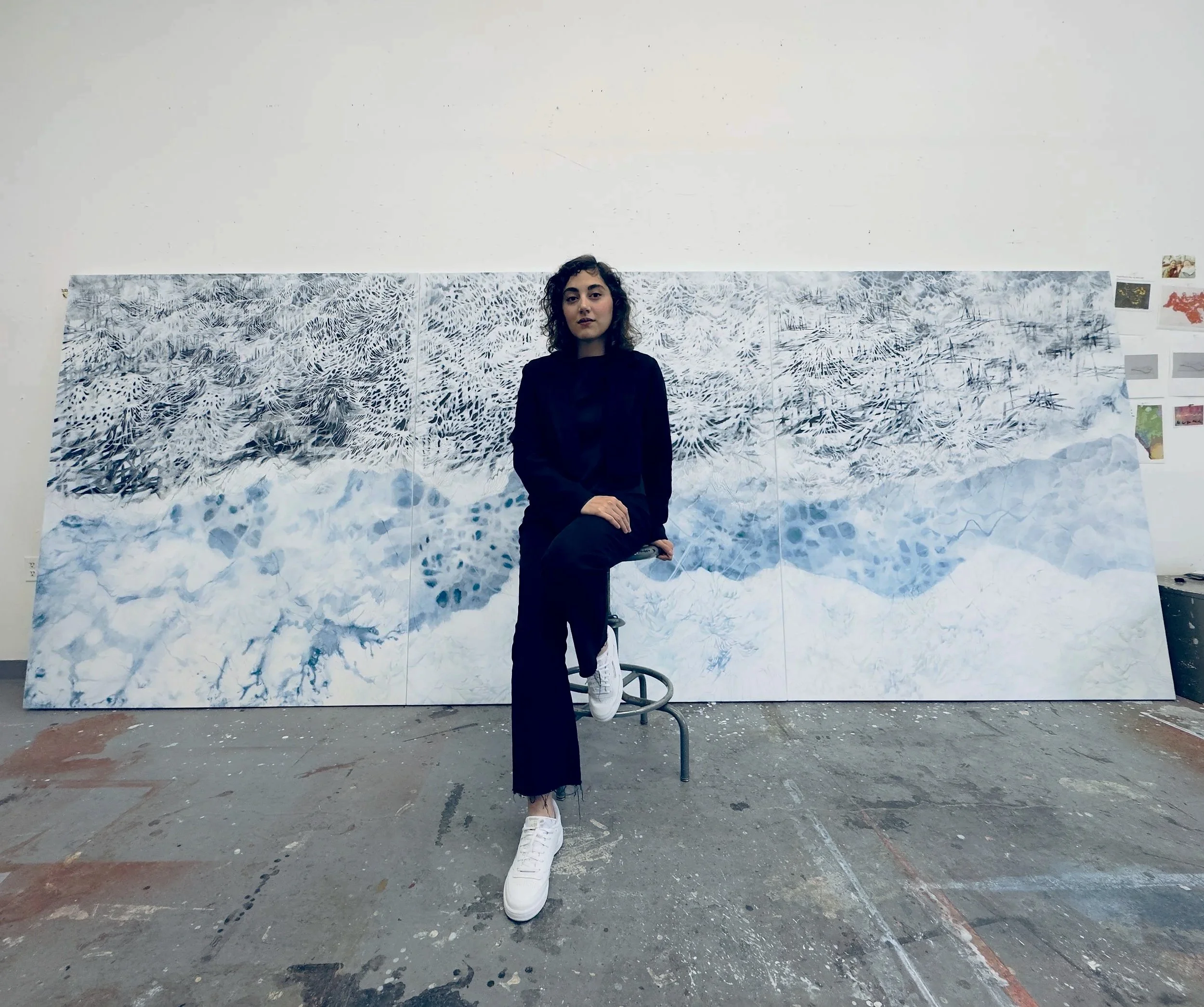 Yekta Tarki (she/her) is an Iranian artist based in Canada. She earned both her Bachelor’s and Master’s degrees in Fine Arts with a specialization in painting from the University of Art, Tehran, Iran. From early in her practice, landscapes—particularly oceans, seas, and waves—have been central to her work, serving as a lens through which she explored memory, nature, and the human condition. While her bachelor’s work emphasized landscape representation, her first Master’s thesis, Art in the Anthropocene: Reflection of a Ruined Environment in Western Contemporary Art, deepened her engagement with the human–nature relationship, situating her practice within broader conversations on the Anthropocene.