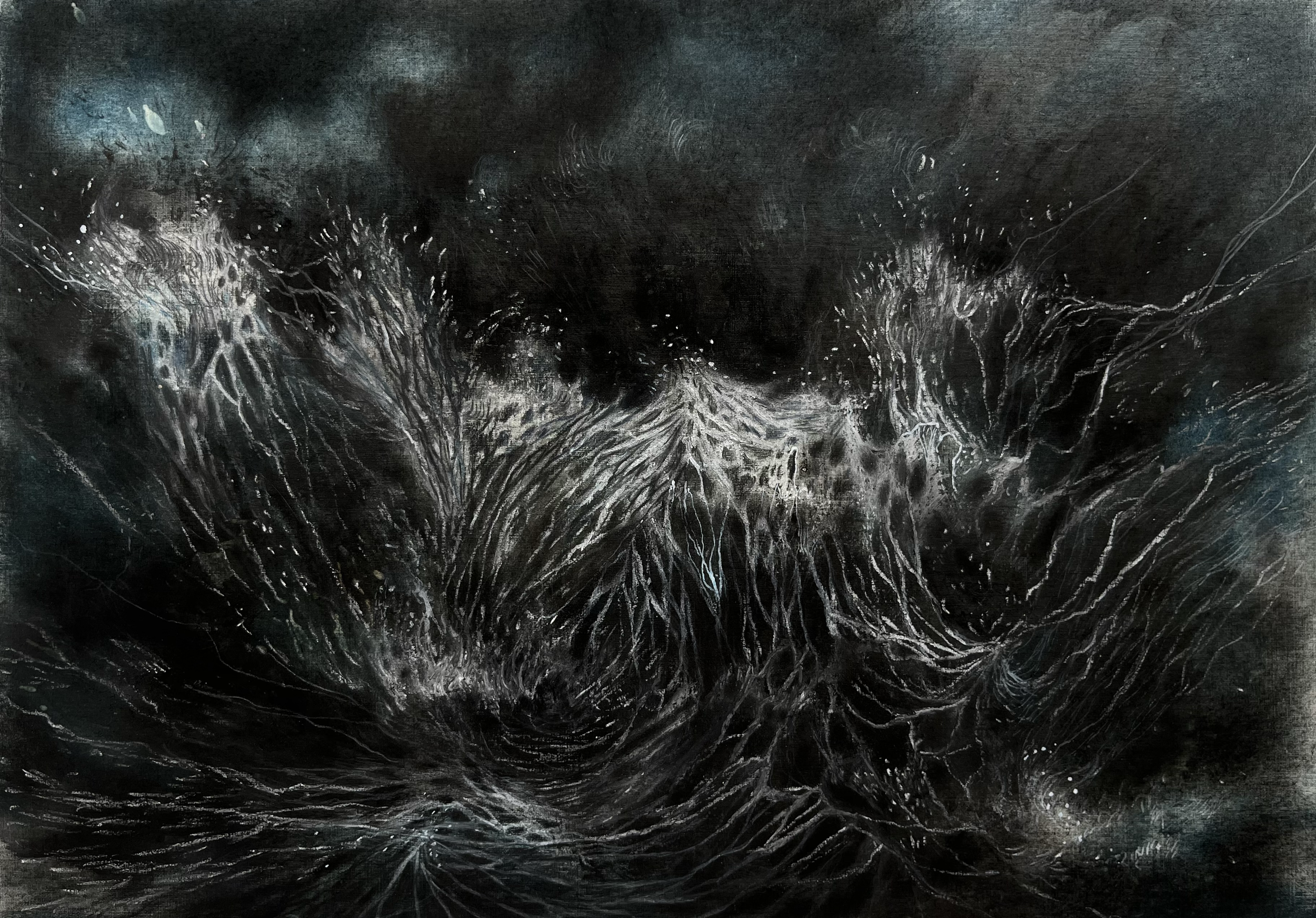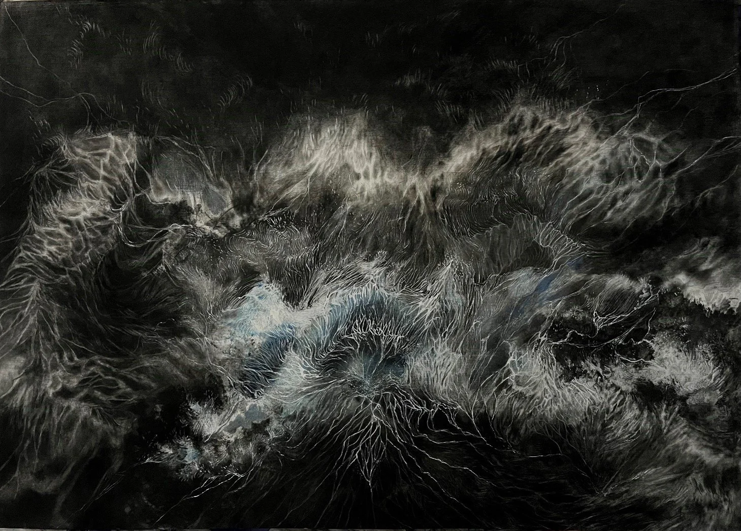 In the Chaos series, landscape painting is not simply a representation of beautiful scenery. The sea, its waves, and the perception of the ocean reflect the experience of everyday life in the contemporary world. These artworks convey the fragile state of human existence in a damaged, unstable, and crisis-ridden era. Life is marked by constant change, and human beings must continuously adapt to stressful, unstable, and uncertain conditions.