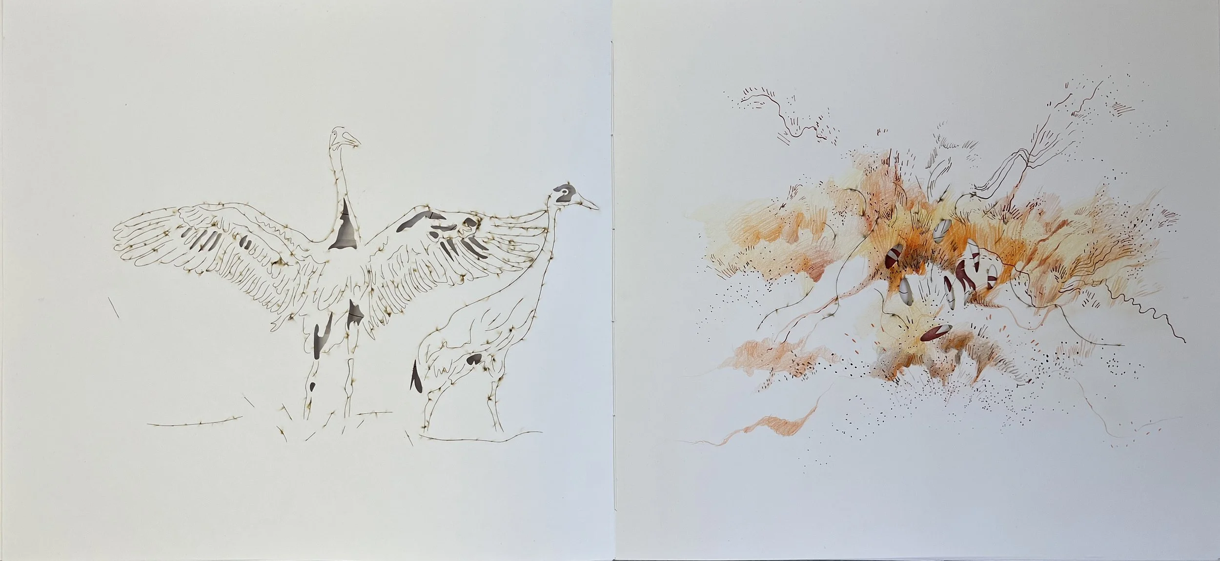 "The Fort Mc Murray Project: Requiem for a lost biodiversity" is an Artist Book which serves as a narrative to share the stories of the species affected by the wildfire, many of which lost their habitats, perished, or were forced to relocate due to the blaze. To accomplish this, I selected and illustrated 17 species residing in Fort McMurray, particularly during May, and cut them out from paper using laser-cutting technology. This act of removing a species from the paper symbolizes their existence and non-existence simultaneously, offering a portrayal of their loss.